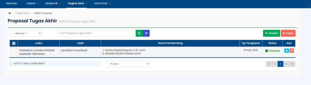 Pengajuan Judul Yang berhasil Dapat di lihat di SIM Masing – Masing Mahasiswa